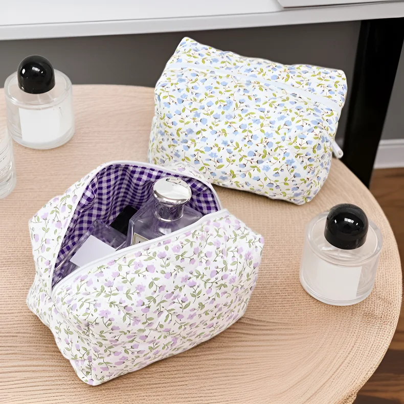 Portable Floral Toiletry Bag Women's Cosmetic Organizer