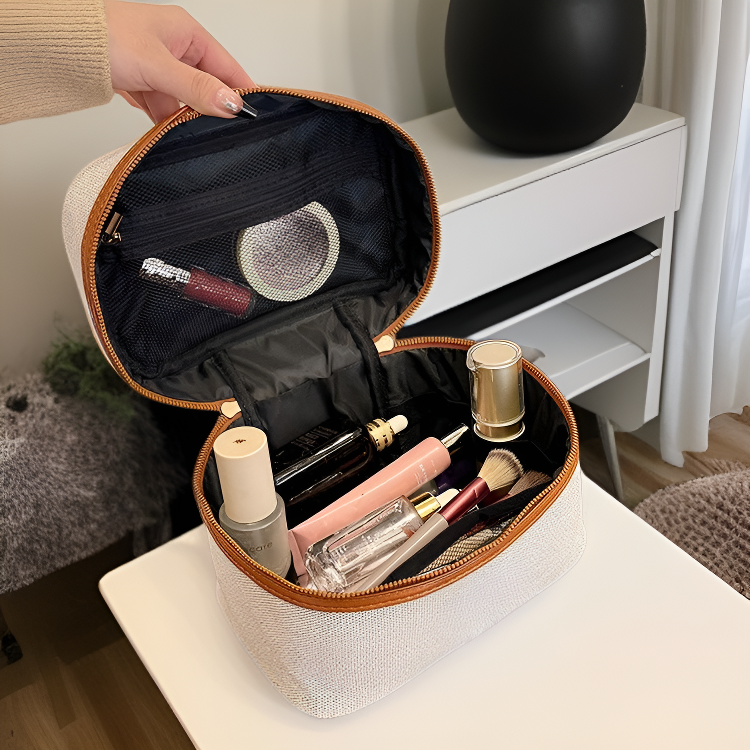 ● Lightweight yet robust, this cosmetic bag is ideal for those who value both functionality and fashion in their beauty storage solutions.